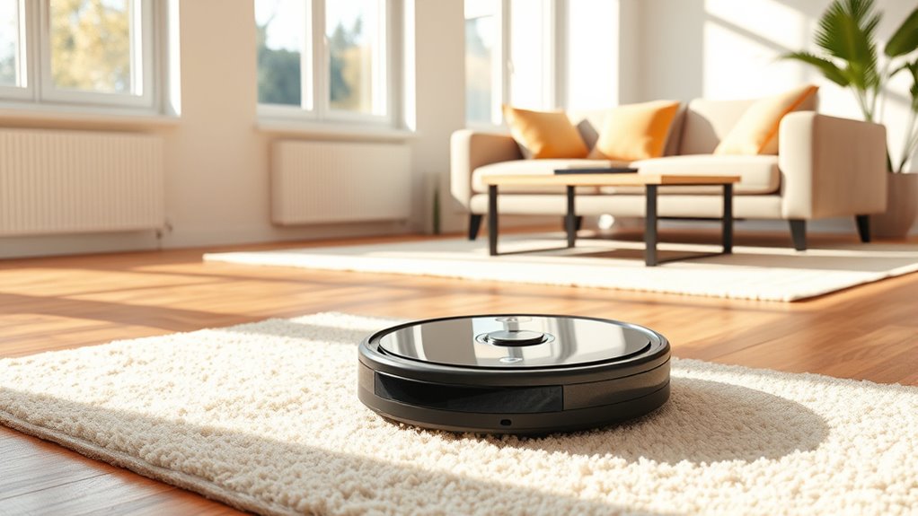 Worried about pet safety with robot vacuums? They’re generally safe, but noise concerns might bother your pets. You can choose models with quieter operation to minimize stress, and some vacuums have sensors to avoid bumping into your pets. Regularly monitoring your pet’s reaction and choosing pet-friendly features guarantees your furry friends stay safe and comfortable while your home stays clean. Wouldn’t you want a device that’s both effective and gentle?
