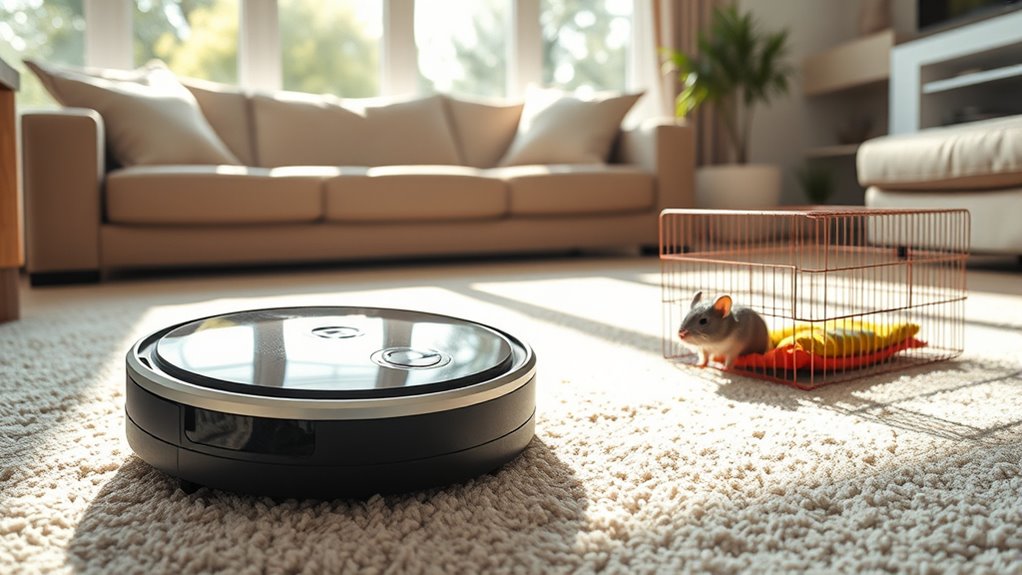 Ultimately, finding a robot vacuum that balances durability, pet hair pickup efficiency, and safety features makes daily cleaning less stressful. With the right choice, you can keep your small animals’ environment clean and safe without worrying about accidents or compromised performance. Regular maintenance and choosing models known for their longevity will help you get the most out of your investment, ensuring your home remains fur-free and your pets stay secure and comfortable.