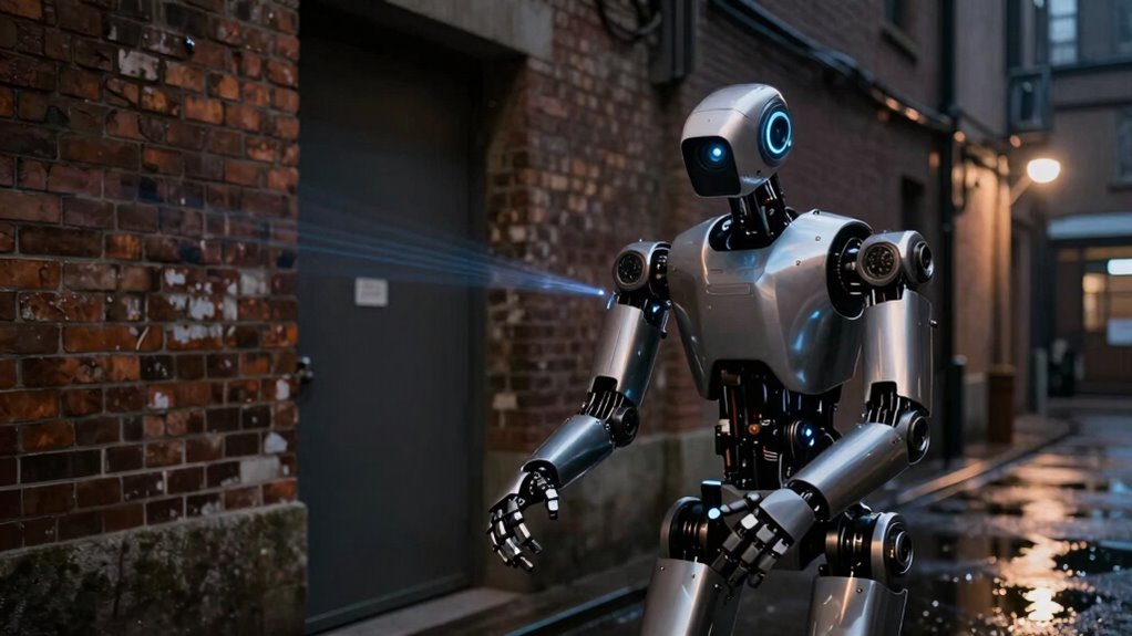 Ever wonder how robots see better in the dark? Using strategic lighting techniques can markedly boost their night navigation. Infrared illumination is a game-changer, allowing robots to “see” without disturbing their surroundings. LIDAR sensors complement this by mapping environments precisely, even in low light. To enhance performance, consider these techniques: