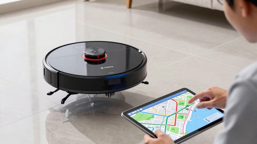 This process helps your vacuum adapt to changes, such as furniture rearrangements or new obstacles, ultimately boosting efficiency and cleaning speed. Re-mapping ensures your robot maintains ideal navigation, saving you time and frustration.