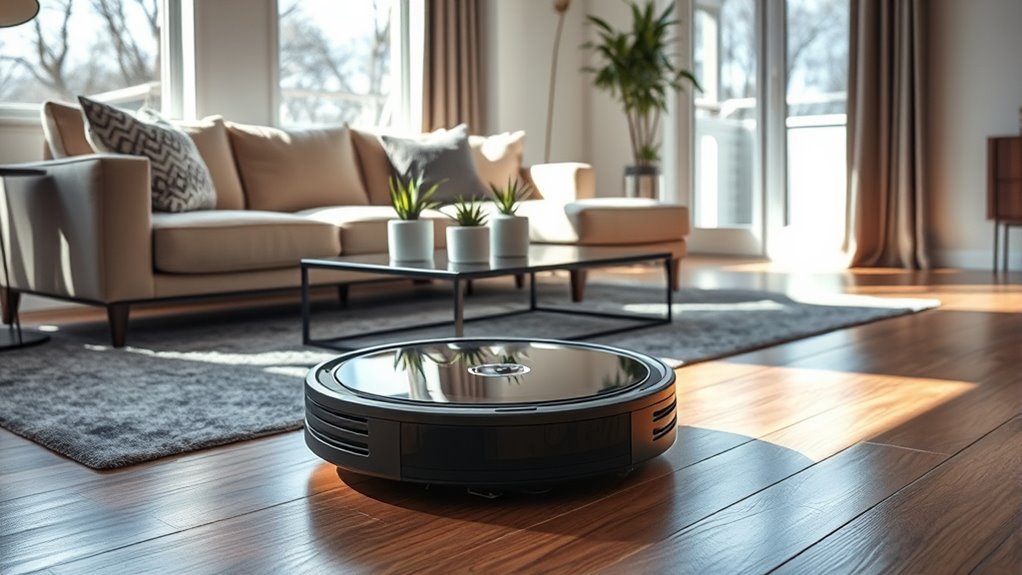 When furniture moves, your vacuum uses real-time mapping to detect the new layout and identify dynamic obstacles. It adapts quickly by rerouting around the moving furniture, ensuring continuous cleaning without interruptions. Sensors help it recognize changes instantly, allowing the AI to update its path on the fly. This way, your vacuum stays efficient and effective, even as your home’s furniture shifts during cleaning sessions.