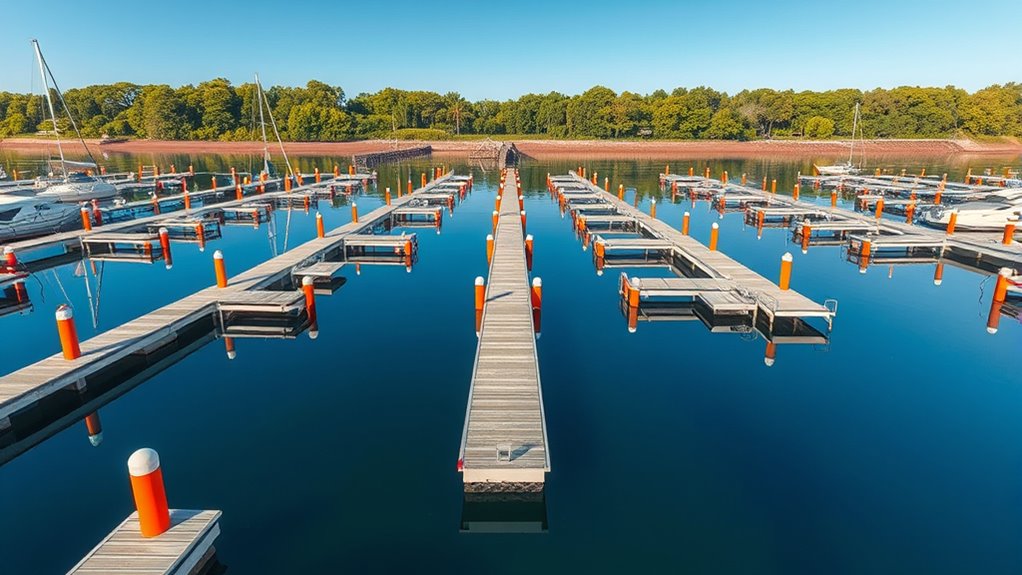 Environmental regulations play a vital role in how you choose your dock placement. You must consider environmental impact to minimize harm to local ecosystems and waterways. Regulatory compliance ensures you follow laws that protect water quality and wildlife. By understanding these rules, you can select a location that not only meets legal standards but also promotes sustainability, helping you avoid fines and community opposition while supporting long-term operational success.