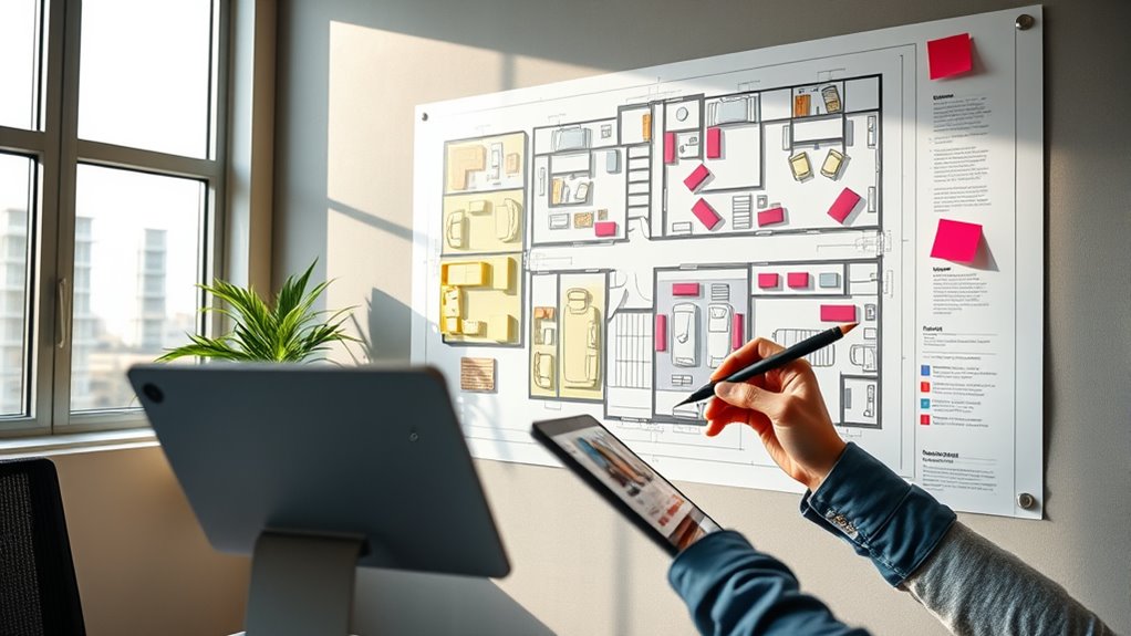 When you rearrange furniture, updating your maps is vital to keep everything organized and easily navigable. A well-maintained virtual layout helps you visualize your space accurately, guaranteeing your furniture placement makes sense and fits your lifestyle. Without updating your maps, you risk confusion, inefficient use of space, and difficulty locating items later on. Whether you’re working with digital tools or traditional sketches, keeping your virtual layout current makes planning future modifications smoother and more effective. Regularly updating your maps ensures your planning remains precise and reliable.