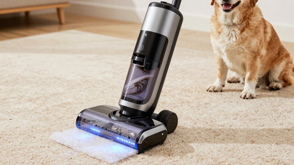 Power and suction strength are critical factors when selecting a carpet cleaner for pet stains because they directly influence the machine’s ability to remove deep-seated dirt and odors. Higher suction power, measured in kilopascals (Kpa), enables the cleaner to extract more liquid, debris, and pet odors embedded within carpet fibers. Stronger suction also shortens drying times, making cleanup more efficient. Portable models with 30% more suction than comparable units tend to deliver deeper, more thorough cleaning results. When combined with powerful brushes, increased suction *substantially* boosts overall cleaning performance, especially on stubborn pet messes. Opting for a machine with robust suction ensures you effectively lift dirt, allergens, and odors, leaving your carpets cleaner, fresher, and healthier.