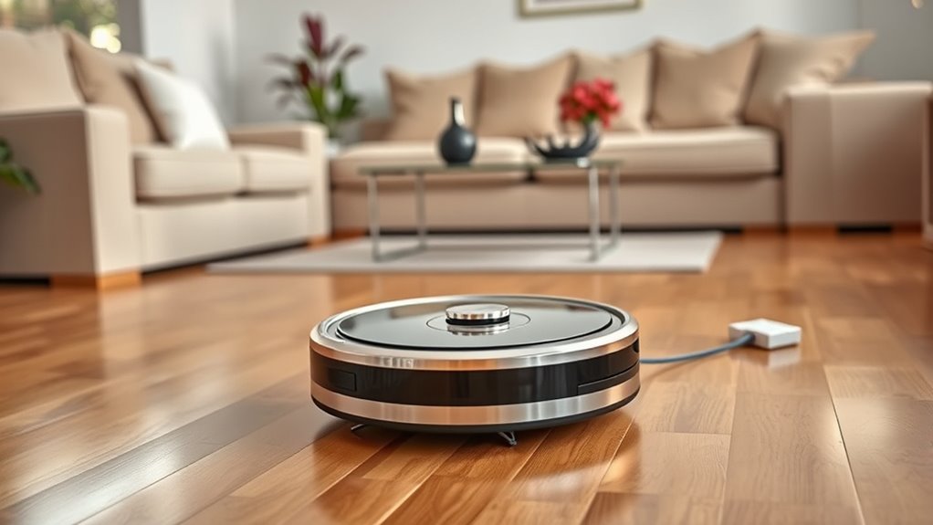 Imagine these robots as chameleons, effortlessly blending into different environments. They can automatically adapt to various floor types, adjusting their cleaning methods for carpets, tiles, or hardwoods. This smart flexibility means I don’t have to switch settings manually. It’s like having a personal cleaner that senses and responds to each surface, keeping my floors spotless without me worrying about the specifics.