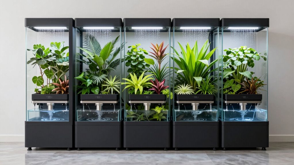 Ever wondered how to choose an indoor garden system that can handle a diverse range of plants? The key is selecting one that supports various species like herbs, vegetables, flowers, and fruits simultaneously. Look for systems with adjustable height or customizable grow lights, so plants at different growth stages and sizes thrive together. Proper water filtration is essential to keep water quality high, which benefits a wide array of plants with differing nutritional needs. Compatible nutrient delivery and pH regulation features are also crucial, ensuring each plant type receives the right nutrients. Additionally, systems with multiple planting pods or stations make it easy to grow various plants without competition or contamination. This versatility maximizes your indoor garden’s productivity and health.