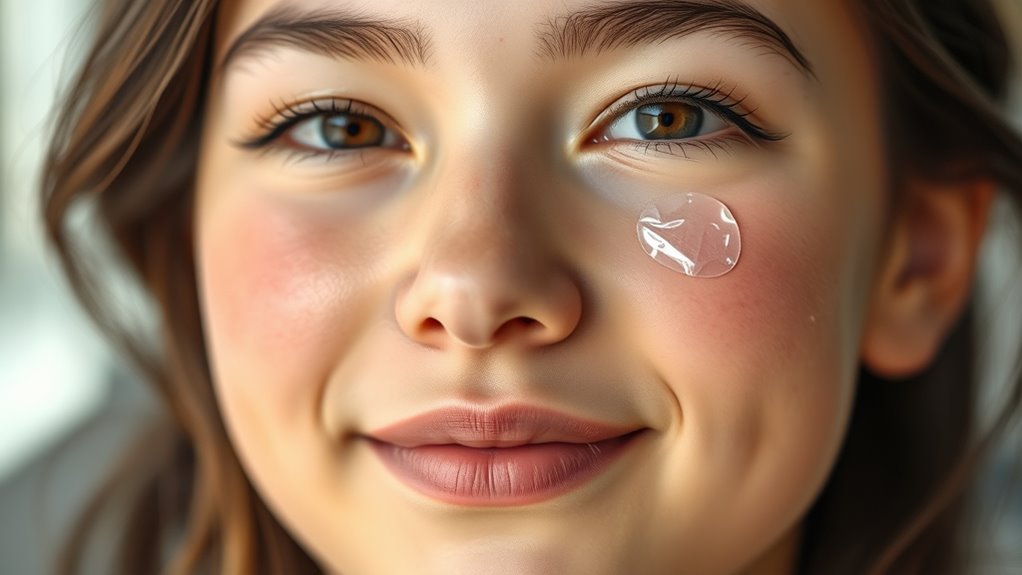 Opting for pimple patches with natural ingredients can markedly enhance your skincare routine, especially for teens with sensitive skin. Ingredients like tea tree oil and calendula oil have antimicrobial properties that help fight bacteria and reduce inflammation, making breakouts less severe. Salicylic acid, derived from natural sources, gently exfoliates dead skin cells and unclogs pores, preventing future pimples. Botanical extracts in patches can also soothe irritated skin, decreasing redness and swelling. Plus, natural ingredients typically contain fewer synthetic chemicals, lowering the risk of irritation or allergic reactions. This plant-based, drug-free approach aligns well with teens seeking gentle yet effective acne solutions. Overall, choosing patches with natural components supports healthier skin while minimizing potential side effects.