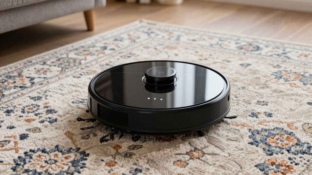 Yes, many robot vacuums have specific features to prevent getting stuck on rugs. I look for models with cliff sensors and anti-tangle brushes, which help detect and navigate around thick or uneven surfaces. Some vacuums also use smart mapping and obstacle avoidance technology, ensuring they recognize rugs as different from hard floors and adjust their cleaning paths accordingly. These features make the cleaning process smoother and reduce the chances of getting stuck.