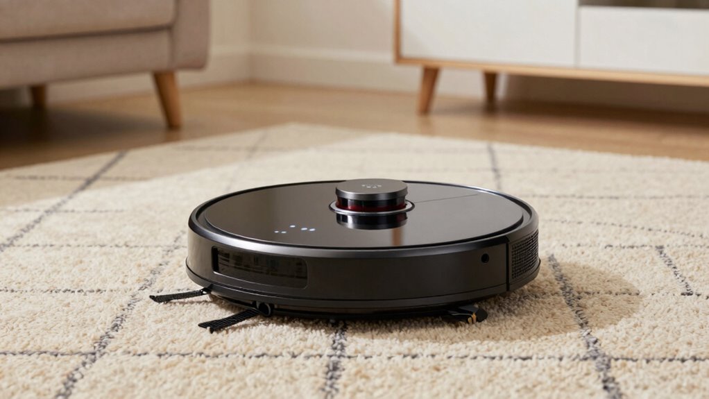Yes, there are maintenance tips for maximum auto carpet boost performance. I recommend regularly cleaning the vacuum’s brushes and sensors to prevent dust buildup, which can hinder performance. Check the filters and replace them when dirty. Keep the vacuum’s wheels free of debris, and make sure the auto carpet boost feature is enabled in settings. Doing these simple steps ensures your robot vacuum performs at its best on carpets.