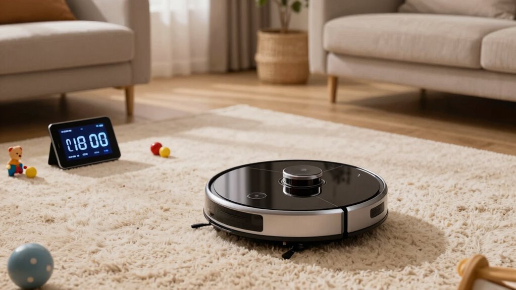 During scheduled cleaning sessions, I find that most robot vacuums typically last between 60 to 120 minutes on a full charge. This range depends on the model and cleaning settings. I make sure to set schedules when I know the vacuum has enough battery life to complete its task. If it runs out mid-clean, some models automatically return to recharge and resume where they left off.