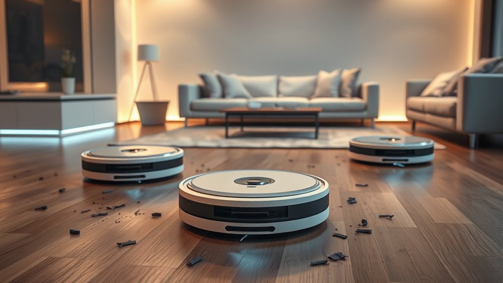 Think of choosing a robot vacuum that maps fast like picking a trusty compass for an uncharted adventure. With the right one, your home becomes a well-mapped landscape, effortlessly navigated and cleaned. When you select a smart, efficient model, it’s like having a loyal guide who knows every corner. So, trust your instincts, pick the best, and let your new robotic helper turn your cleaning journey into a smooth sailing voyage.
