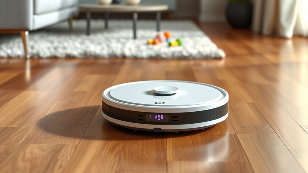 Did you know that most advanced robot vacuums can detect and avoid up to 95% of obstacles? I’ve found that these vacuums use sensors and cameras to navigate intelligently, making real-time decisions to steer clear of furniture, pets, or clutter. Their obstacle detection is quite effective, reducing the risk of collisions or getting stuck. I’ve personally seen how these features make cleaning smoother and more efficient.